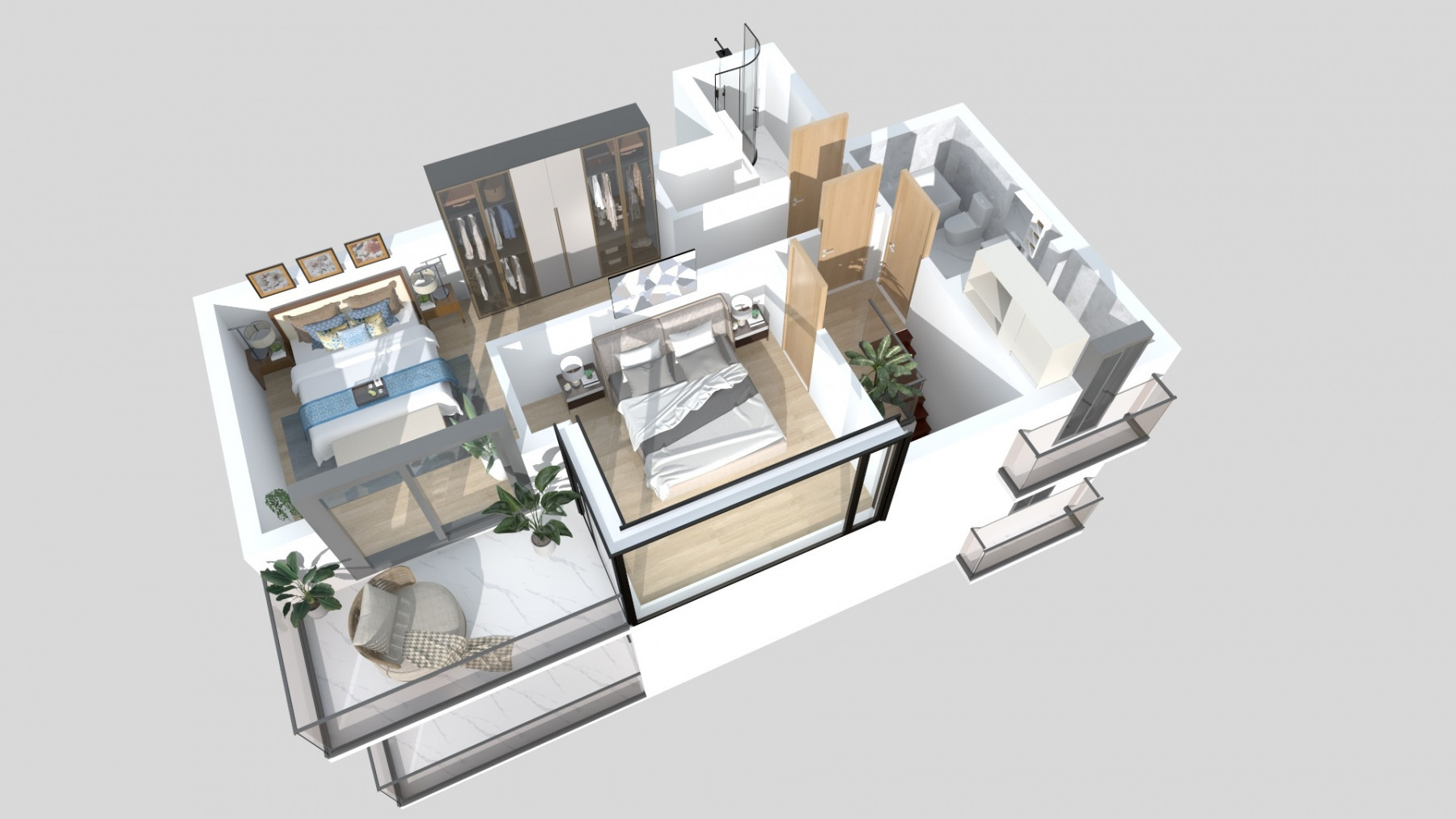 - Se va monta un singur aparat de AC in zona de living, iar pentru celelalte incaperi fiecare proprietar isi va achizitiona propriul model de AC care va fi montat insa pe instalatia deja prevazuta de dezvoltator,